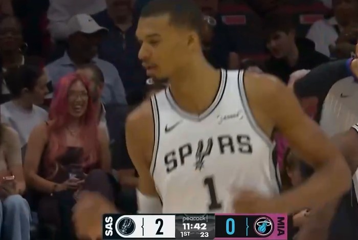 First blood!卡斯尔借掩护突破抛传 助飞文班轻松空接暴扣!